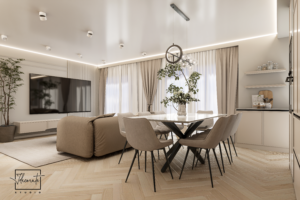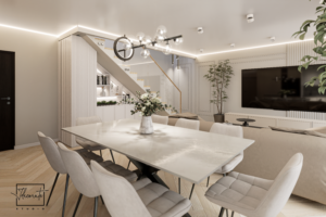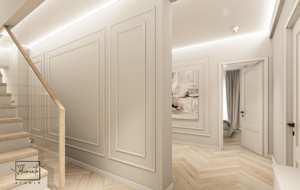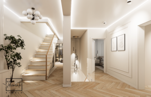 Acest proiect de design interior conceput pentru o vilă sofisticată întrunește toate calitățile unui cadru ideal, modern și coerent din punct de vedere tematic. Ne-am străduit ca prin fiecare detaliu realizat să oglindim personalitatea și dorințele clienților noștri, utilizând o îmbinare meticuloasă de idei și metode ingenioase de design în cadrul acestui proces elaborat de creație. Demn de menționat este faptul că am acordat la fel de multă importanță aspectului ergonomic și tehnologic, precum am acordat celui decorativ, proiectând designul în așa fel încât beneficiarii să nu aibă parte de o experiență deosebită doar din punct de vedere estetic, ci și funcțional