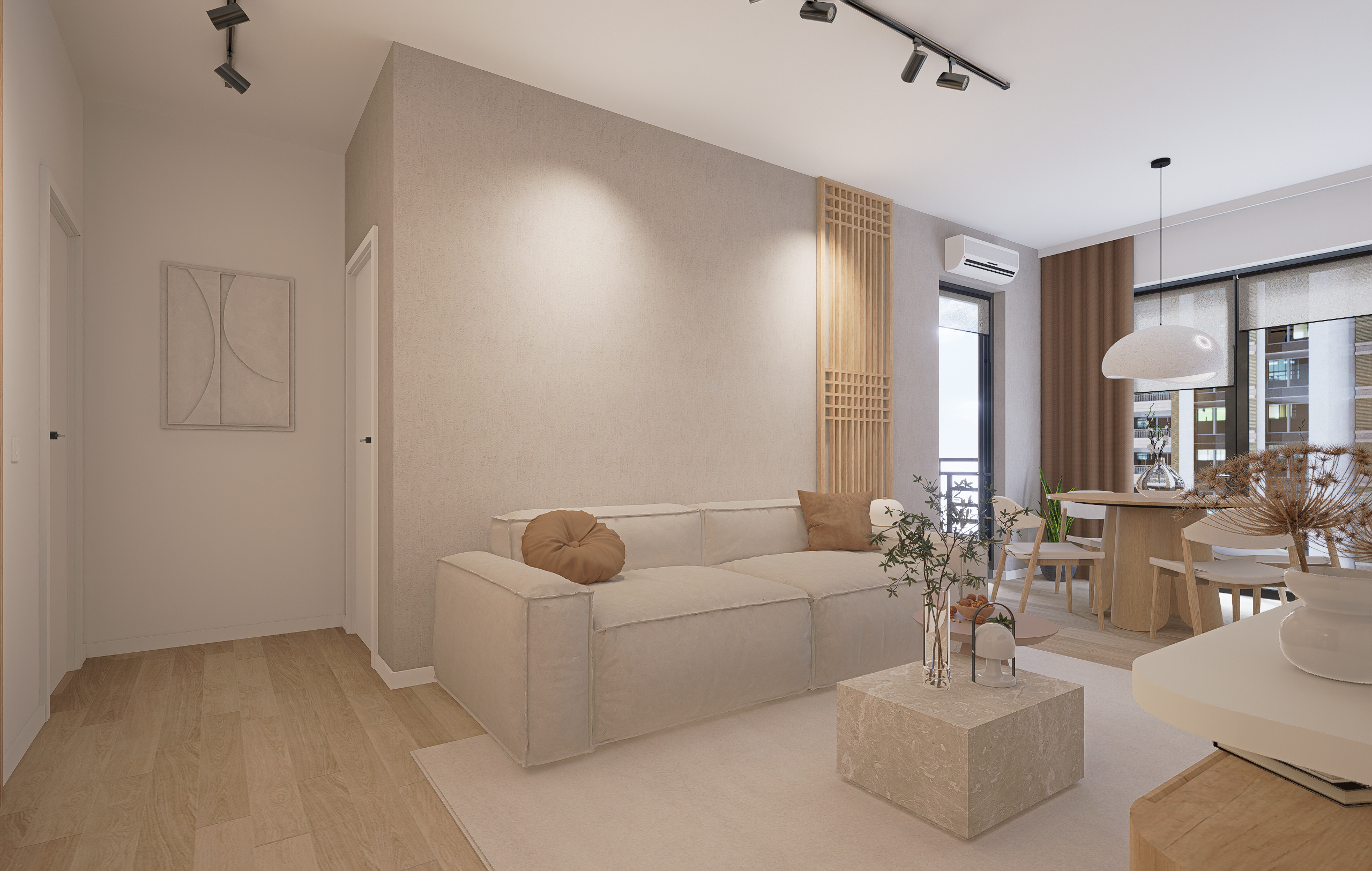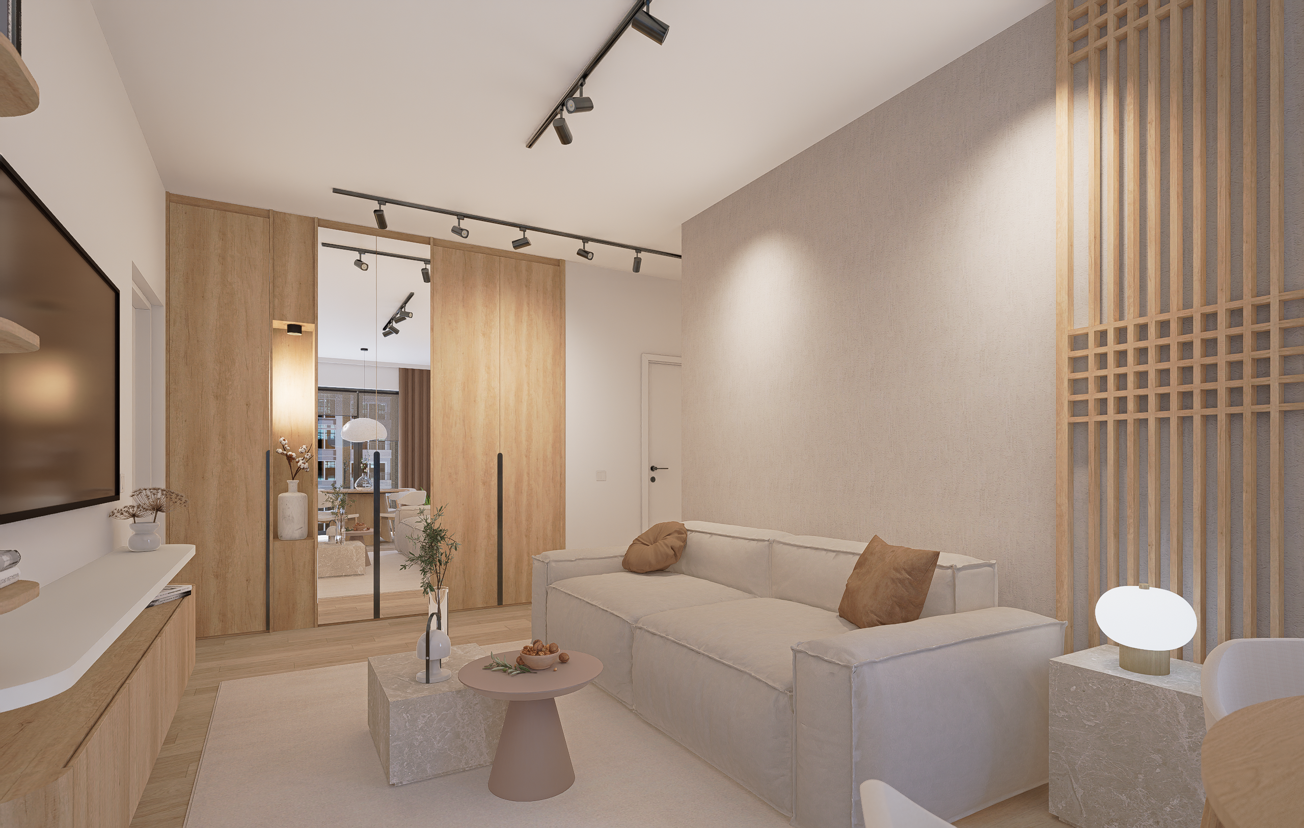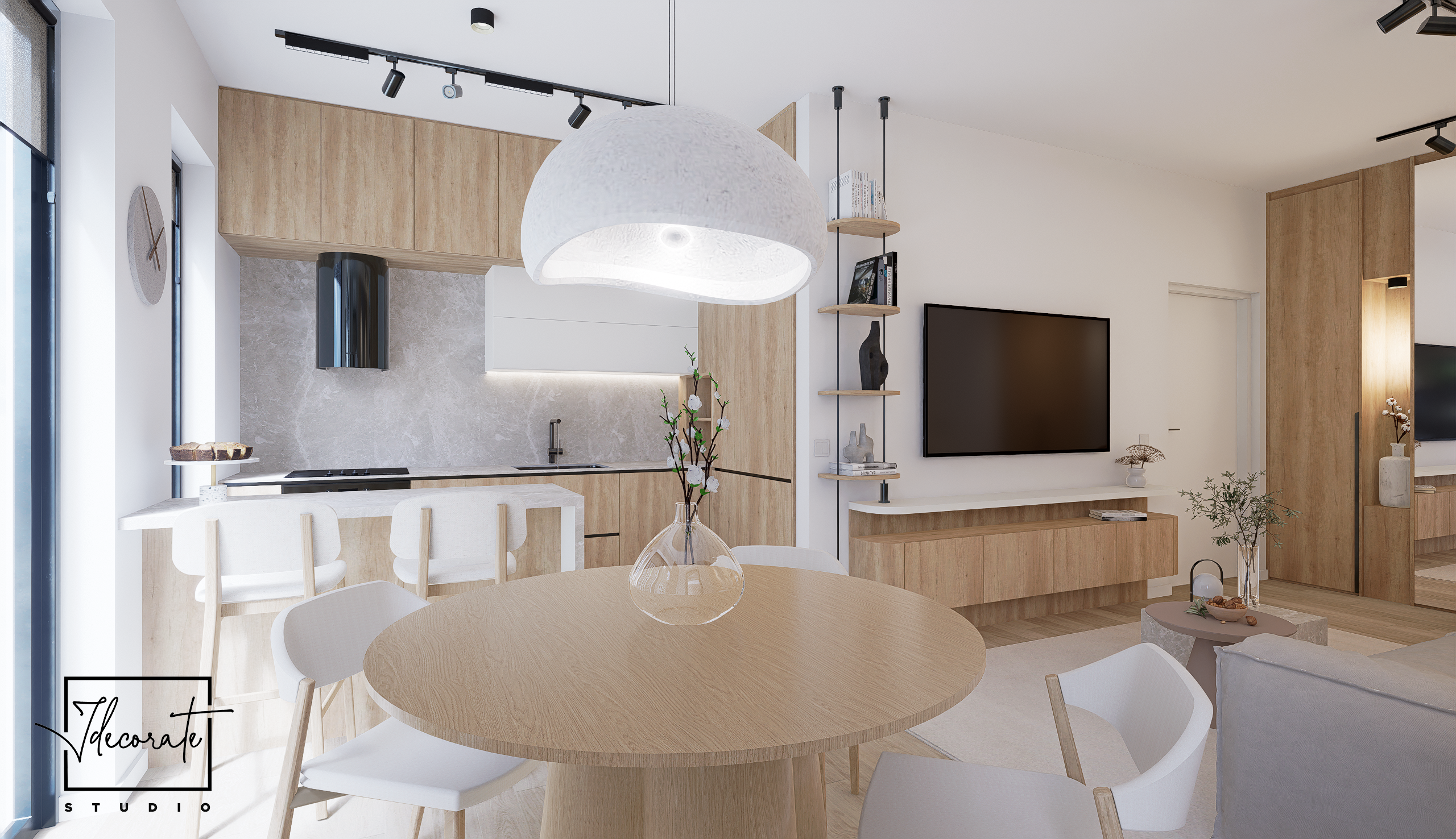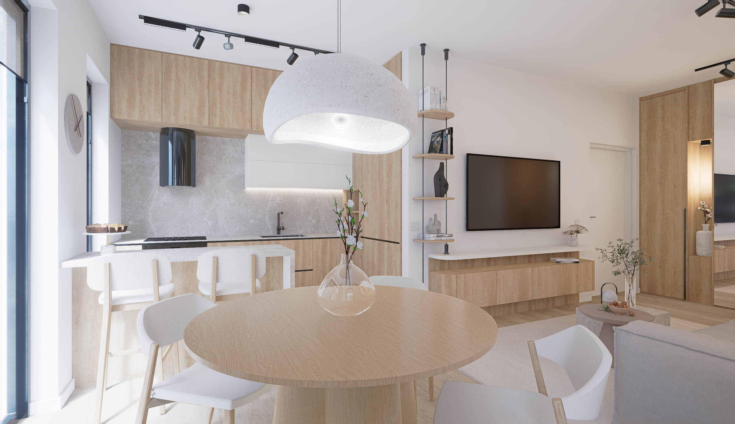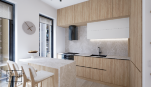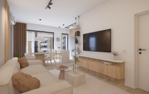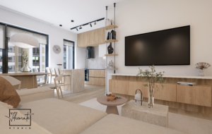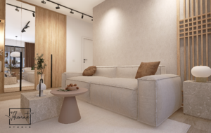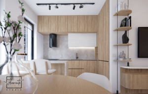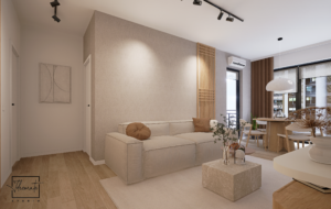 Prin prisma acestui proiect, am îmbinat multiple idei creative de design ce ne-au permis să construim un cadru care să reflecte excelent personalitatea și standardele clientului nostru, întrecându-i orice așteptare. Fiecare etapă parcursă în acest proces, de la alegerea gamei cromatice până la selectarea surselor de iluminare ambientală, a avut un rol deosebit de important, fapt pentru care am acordat atenție și am oferit devotament în mod constant pentru acest proiect, fără să neglijăm un anumit aspect. În ceea ce privește tematica designului, paleta de culori reflectă un ton minimalist, fiind alcătuită în special din nuanțe deschise. Texturile din lemn contribuie la un echilibru vizual și la o liniște aparte, inspirând și o stare de prospețime. Nu în ultimul rând, un alt aspect demn de menționat constă în maniera elegantă în care am organizat piesele de mobilier și accesoriile decorative astfel încât să avantajăm cât mai mult spațiul locuinței.