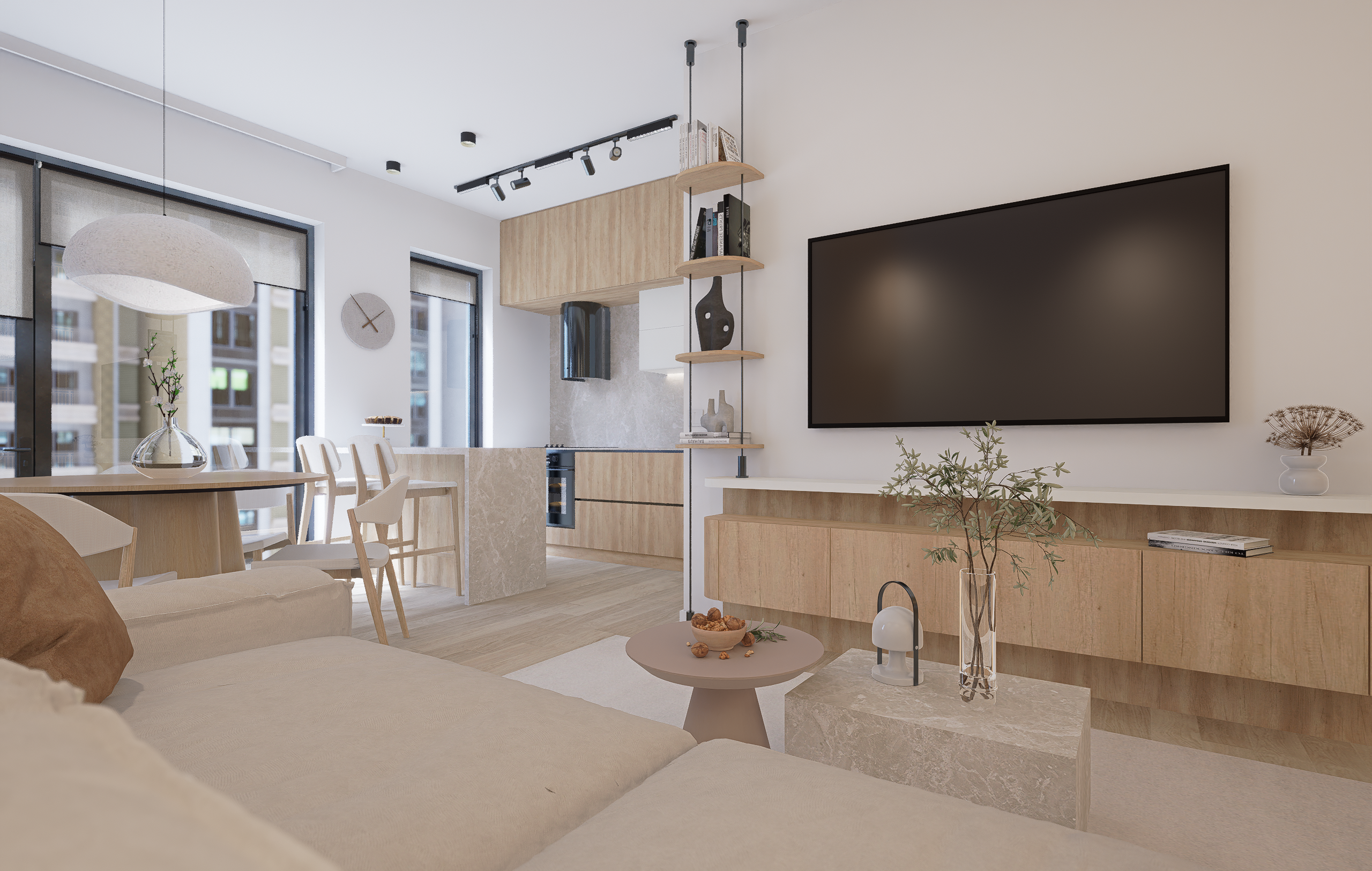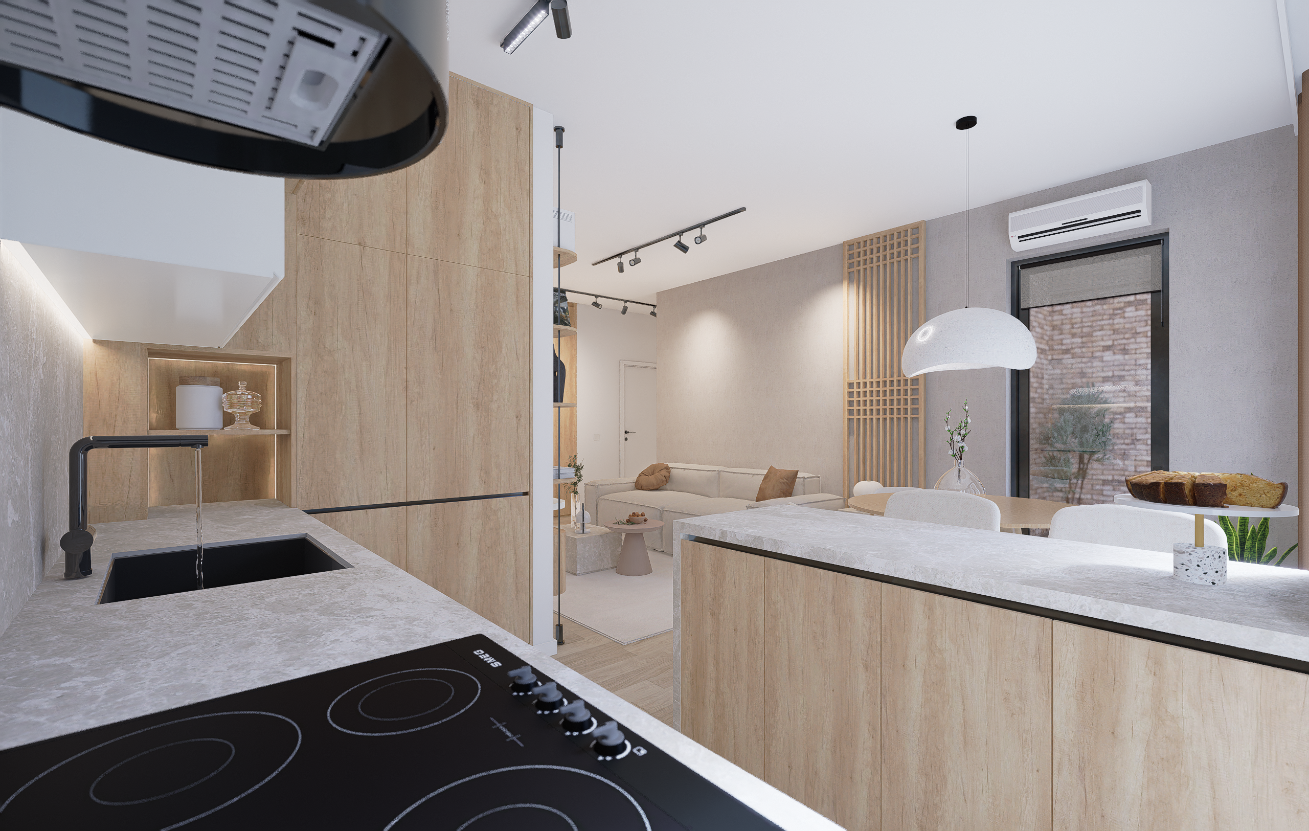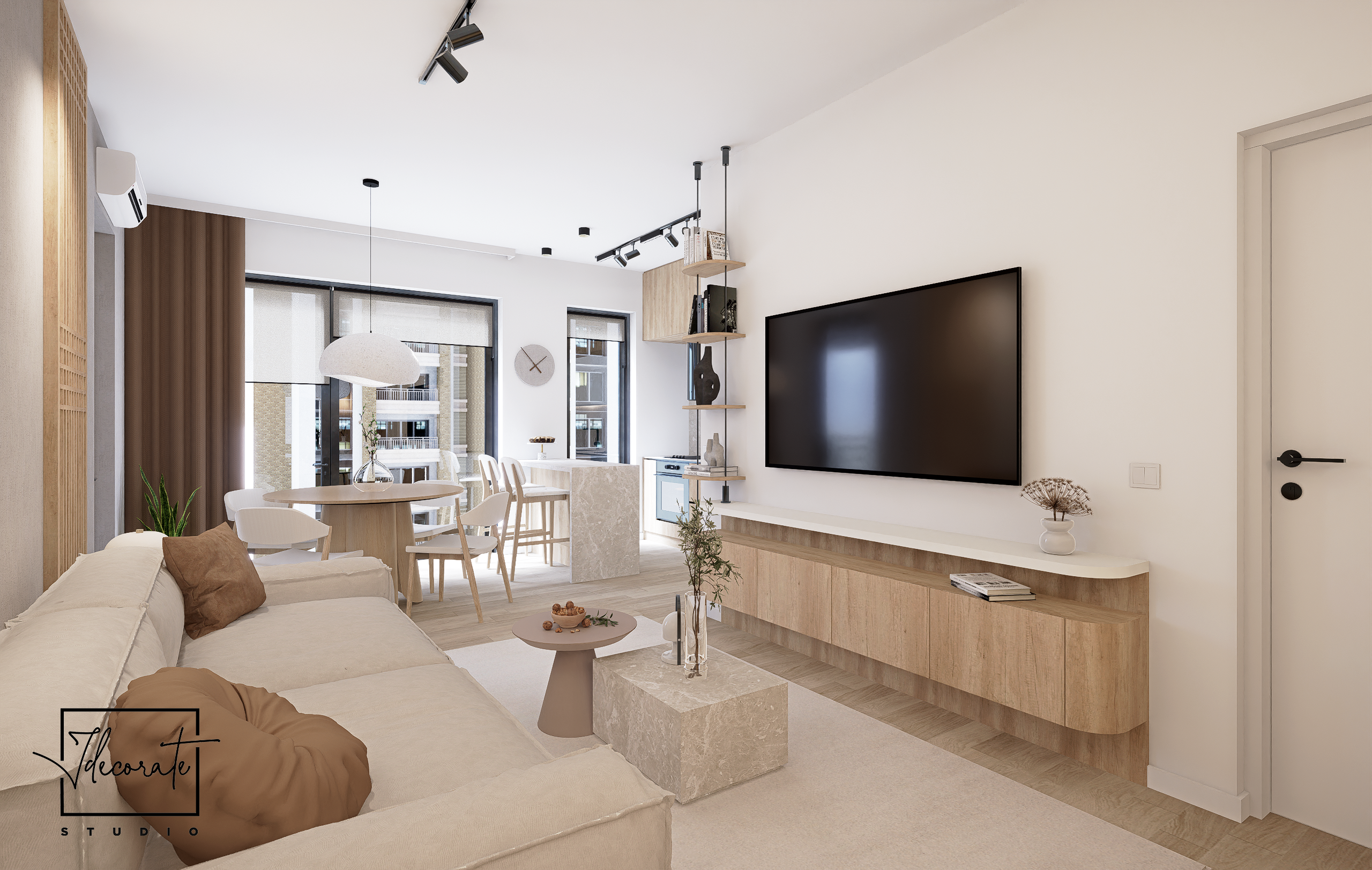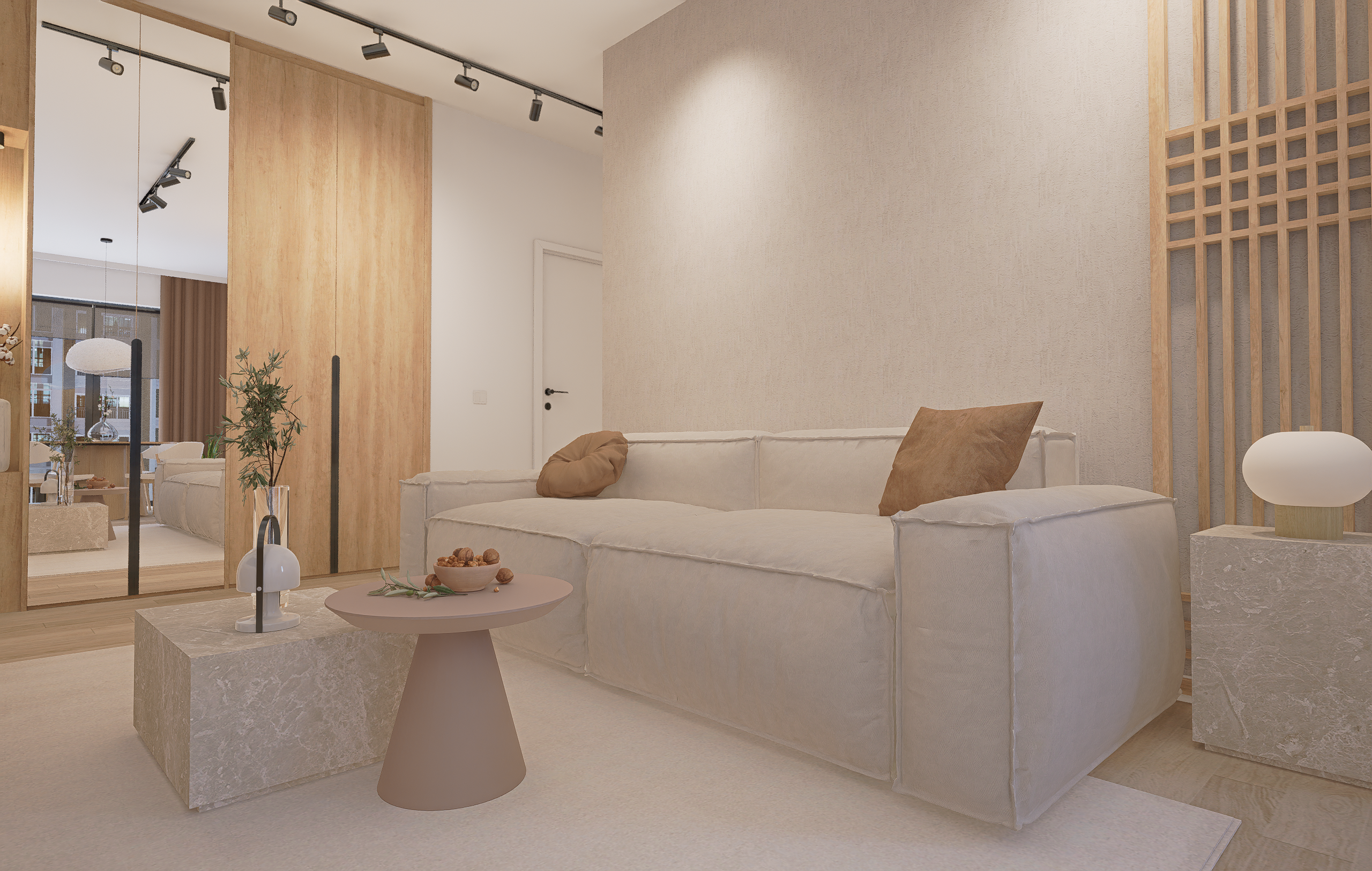 Prin prisma acestui proiect, am îmbinat multiple idei creative de design ce ne-au permis să construim un cadru care să reflecte excelent personalitatea și standardele clientului nostru, întrecându-i orice așteptare. Fiecare etapă parcursă în acest proces, de la alegerea gamei cromatice până la selectarea surselor de iluminare ambientală, a avut un rol deosebit de important, fapt pentru care am acordat atenție și am oferit devotament în mod constant pentru acest proiect, fără să neglijăm un anumit aspect. În ceea ce privește tematica designului, paleta de culori reflectă un ton minimalist, fiind alcătuită în special din nuanțe deschise. Texturile din lemn contribuie la un echilibru vizual și la o liniște aparte, inspirând și o stare de prospețime. Nu în ultimul rând, un alt aspect demn de menționat constă în maniera elegantă în care am organizat piesele de mobilier și accesoriile decorative astfel încât să avantajăm cât mai mult spațiul locuinței.